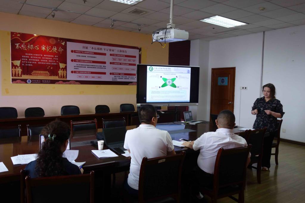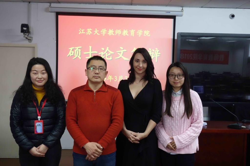 成人论坛 乌克兰籍研究生Tetiana参加硕士论文答辩,答辩后与专家评议组成员合影留念