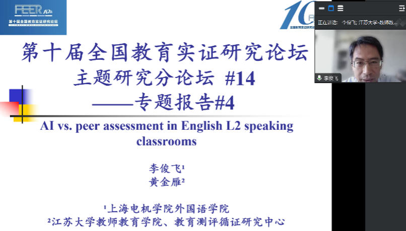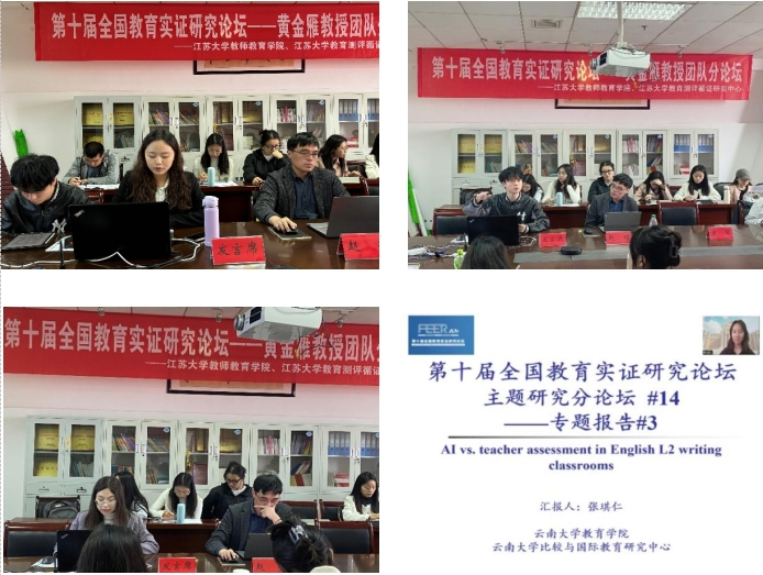 On November 4th, the sub-forum, “Research on Generative Artificial Intelligence and Language Assessment – Multivariate Generalizability Theory Approach”, part of the 10th Forum on Empirical Education Research, was successfully conducted in Room 1806 of the Sanjiang Building at Jiangsu University. This event was hosted by East China Normal University and organized by the School of Teacher Education and the Evidence-Based Education Assessment Research Center of Jiangsu University. The conference was held in a hybrid format, integrating online and in-person participation.