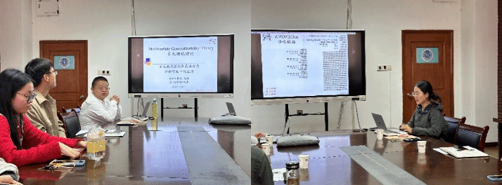 On the afternoon of April 29th, the Evidence-Based Research Center for Educational Assessment held an academic lecture on "The Application of Multivariate Generalizability Theory in Educational Research" in Conference Room 1806 of Sanjiang Building. The lecture was presented by Professor Huang Jinyan and his graduate student Dong Yaxin, moderated by Mr. Shen Guanghui, and attended by some teachers and graduate students from the college.