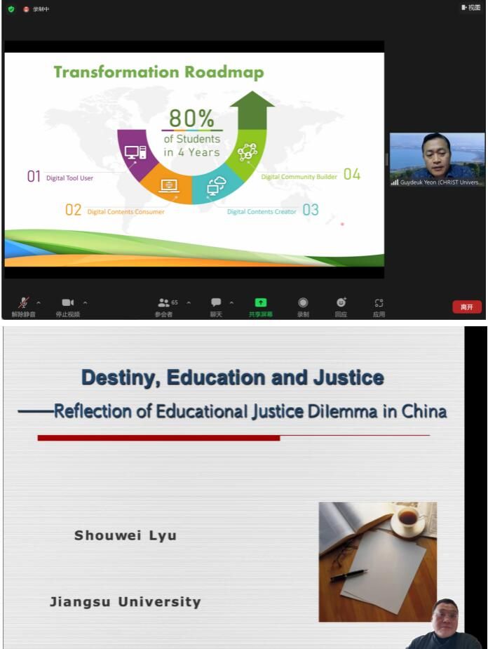 Professor Shouwei Lu, School of Teacher Education, Jiangsu University, and Professor Guydeuk Yeon, Director of the Innovation Center of CHRIST University, India, delivered keynote reports on “Destiny, Education, and Justice: Reflections on the Justice Dilemma of Chinese Education” and “WeJump: A Social Innovation Model for Vulnerable Youth Groups.” In the sub-forum stage, scholars conducted in-depth exchanges and discussions on the topics of “Education and Equity,”“Technology and Education,” and “Education Policy Research.” Xiaohui Li, Yiwen Cheng, Xuyan Dong, and other teachers and students of the School of Teacher Education also presented their research at this esteemed conference. At the closing ceremony, Professor Jeong Jeong-hoon of the BK21 ESR Research Group at the University of Busan, South Korea, summarized the meeting.
