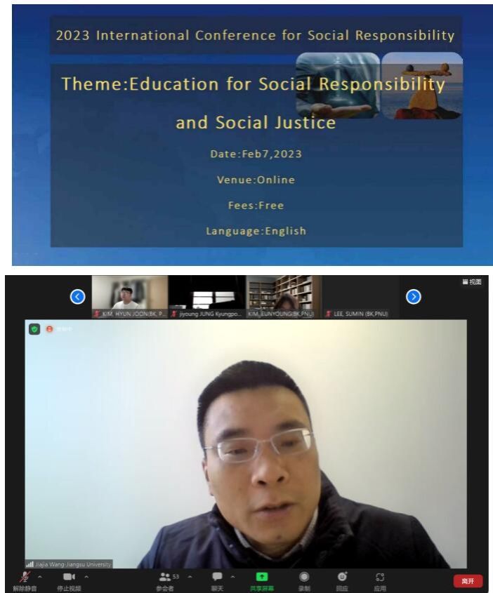 On February 7th, 2023, the International Academic Conference on “Social Responsibility of Education” was successfully held online. More than 50 experts and scholars from China, the United States, Japan, South Korea, India, and other countries exchanged and discussed the theme of “social responsibility and justice care of education.” The International Academic Conference was co-sponsored by the BK21 ESR research group of Busan University in South Korea and the College of Literature at Anhui University of Finance and Economics.
