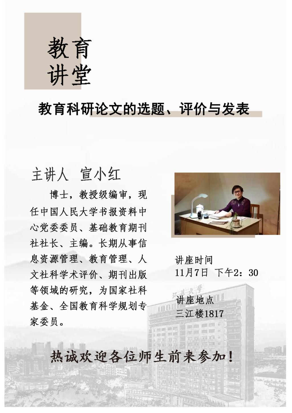 上一条:三江教育讲堂:“非学校化”教育思想研究 下一条:教育讲堂:生活、制度与精神——学校教育的时代问题