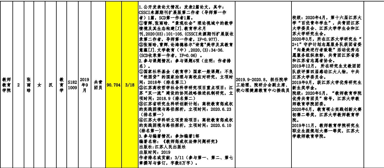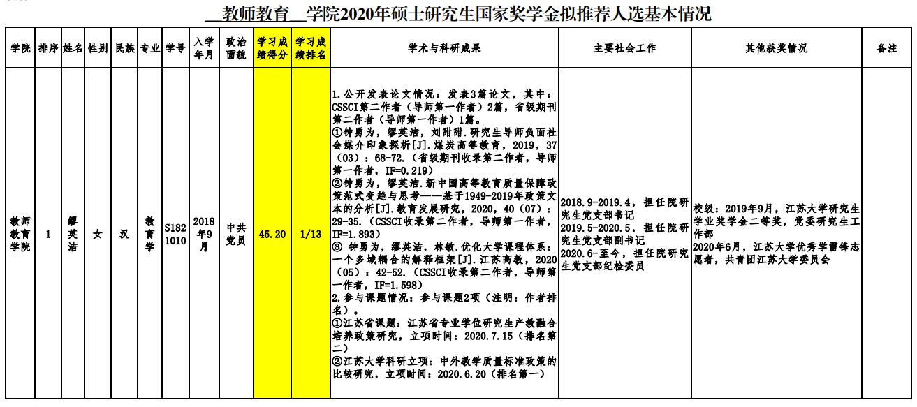 经个人申请,综合答辩,学院研究生国家奖学金评审工作小组审定,确定缪英洁、张雨晗同学为成人论坛 2020年研究生国家奖学金推荐人选,倪梦娟同学为备选推荐人选,详细见附件。公示期为10月9日-10月14日。若对公示名单有异议,请于公示期内与成人论坛 行政办公室联系,联系电话:0511-88790665,地址:三江楼1805。