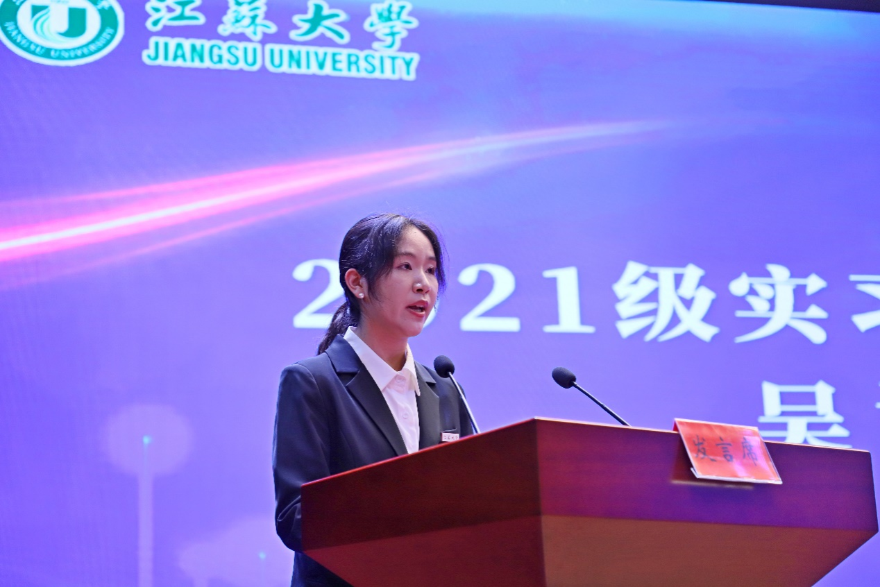 思想政治教育(师范)2101班吴语彤作为2021级实习生代表发言并表态。在教育实习中严格遵守成人论坛 和实习中学的规章制度,听从指导老师安排,认真完成实习中的各项任务;关注社会现实和时代发展,积极探索和创新教育方法和手段,努力成长为一名优秀的教师。