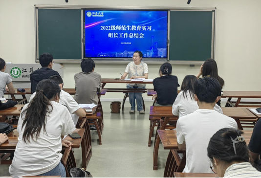 202569日晚,2022级师范生教育实习组长工作总结会在主A楼师范生技能训练中心212教室召开,2022级全体实习组长及部分实习学生代表参加总结会,会议由师范教育中心副主任尹华主持。