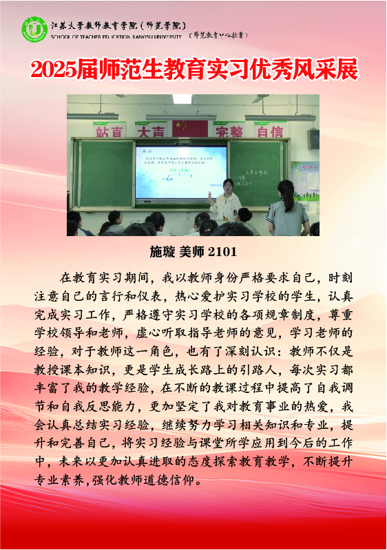 上一条:2025年教育实习优秀带队教师风采展 下一条:2022级师范生教育实习组长工作总结会召开