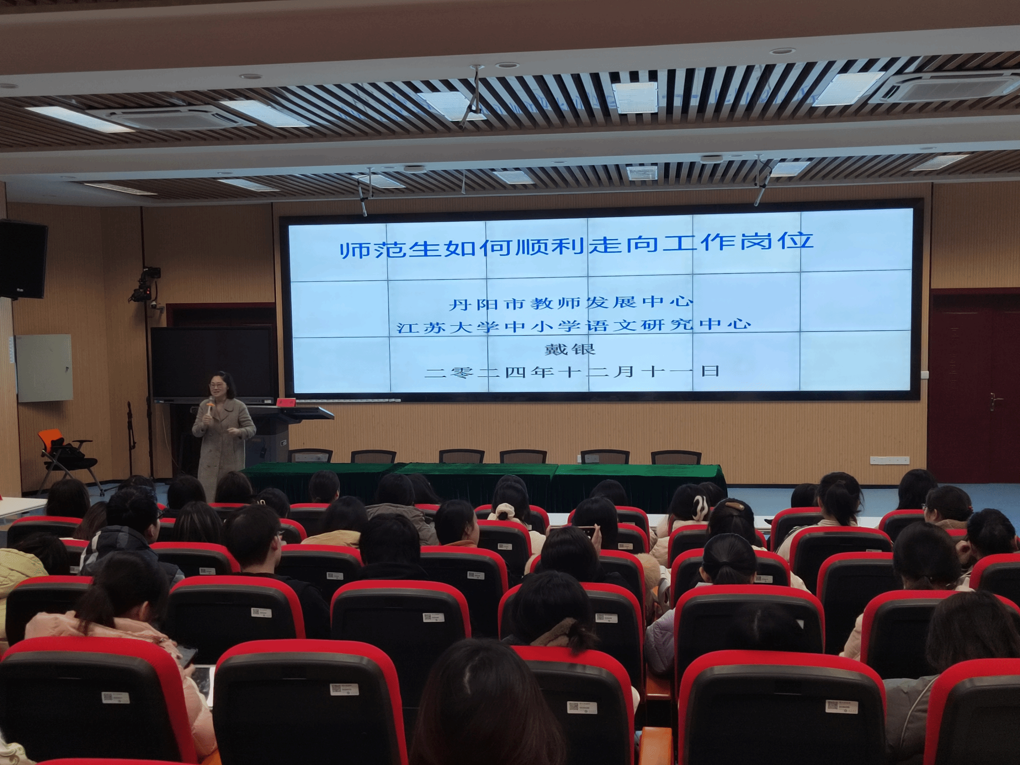 讲座邀请到江苏省特级教师、正高级教师、丹阳市教师发展中心的戴银老师主讲。戴老师是我校汉语言文学(师范)专业的优秀校友。师范生从校园迈向社会,必须要经历两关考验:中小学教师资格证和教师编制考试。戴老师从新教师招聘遇到的困难、师范生考教资遇到的问题、期望得到的帮助出发,通过互动式的交流探讨,深入细致地对同学们进行了全科面试指导。她具体地就面试主要包含的板块、模拟课堂有哪些注意点、如何应对随机问题等进行多方面的解析,帮助学生把握如何获得有效帮助,如何围绕学科核心素养准备笔试,以及如何进行正向努力和积极准备。戴老师还结合实例对她最为了解的初中语文学科的面试要点做了深入分析。