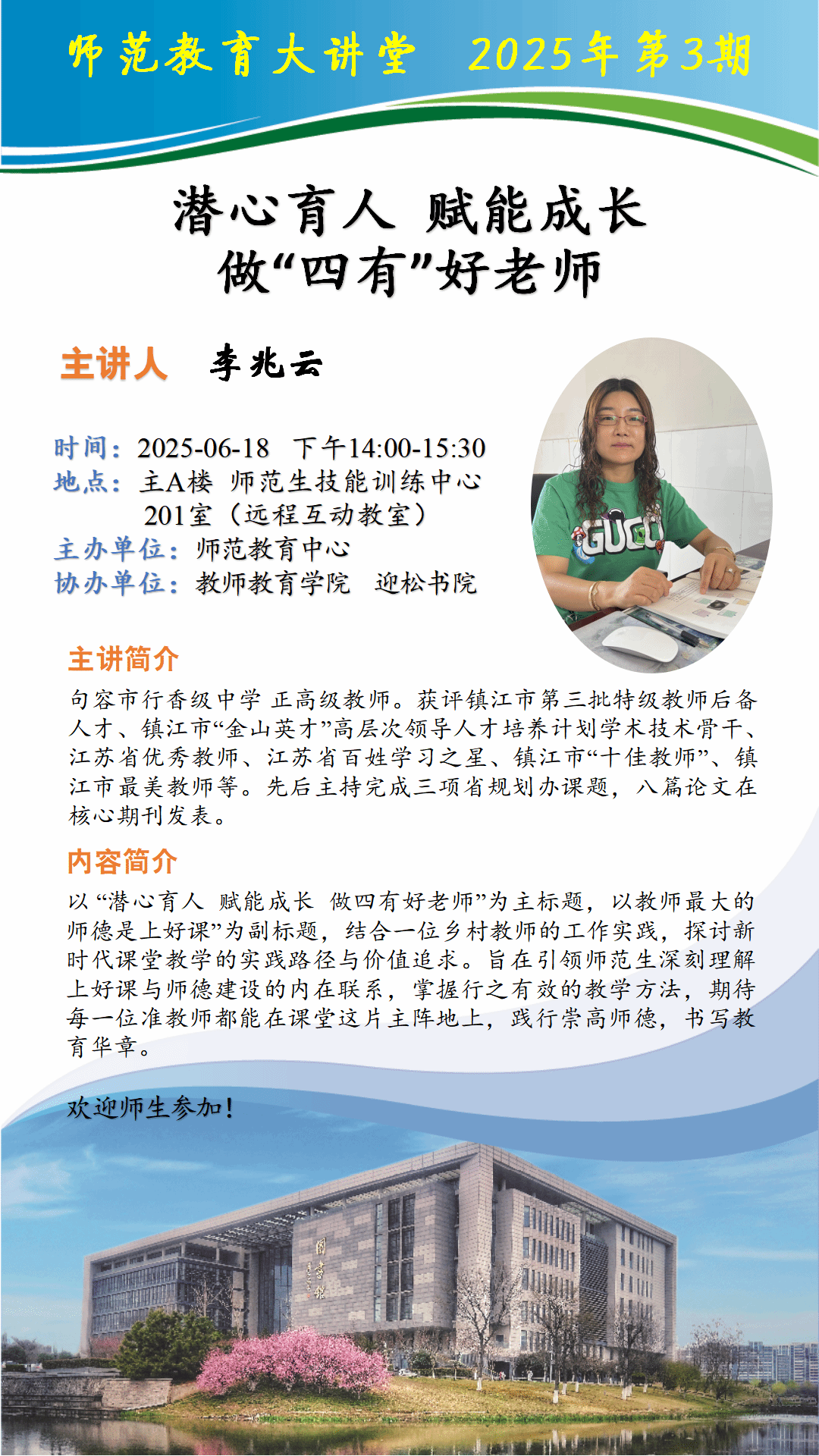 上一条: 【师范教育大讲堂】2025年第4期 育人有道,治班有方——班主任工作的创新与实践 下一条:关于举行2025届师范类毕业生代表师德教育活动暨最后一堂师德教育课的通知