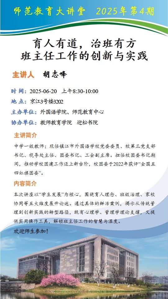 上一条: 【师范教育大讲堂】2025年第5期 融合与重构:英语教学新思维与创新实践 下一条:【师范教育大讲堂】2025年第3期 潜心育人 赋能成长 做“四有”好老师